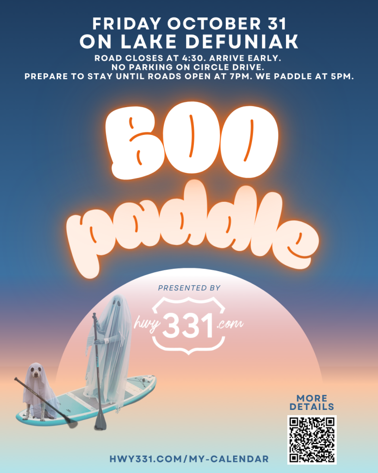Something delightfully spooky is drifting across Lake DeFuniak this Halloween. The HWY 331 Paddle Club is launching the first-ever Boo Paddle, an evening of costumed paddling, community spirit, and old-fashioned Halloween charm. Paddle begins at 5PM on Friday, October 31st. While paddlers haunt the lake, families can enjoy one of DeFuniak Springs’ favorite annual traditions, the Circle Drive Trick-or-Treating Celebration.