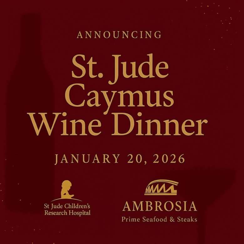 Join Ambrosia Prime Seafood & Steaks on Tuesday, January 20, 2026 for an extraordinary evening. Beginning at 6PM, experience a curated multi-course dinner paired with iconic Caymus wines, all in support of St. Jude Children’s Research Hospital.