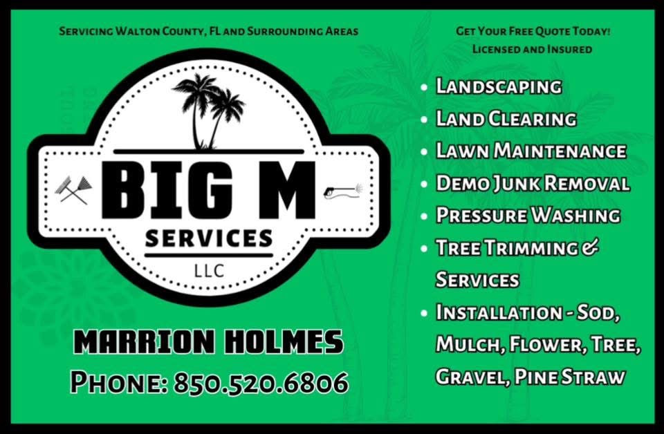 tree removal, stump grinding, lot clearing, sod installation call 8505206806. Discounted prices for the month of Jan.