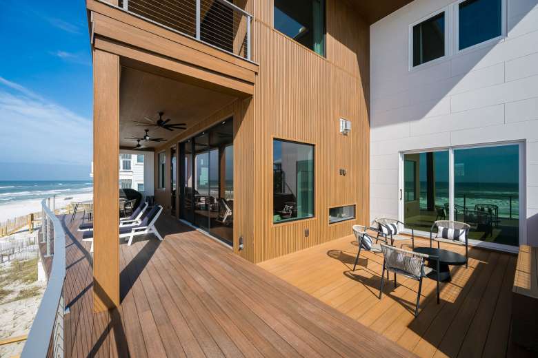 It's new. It's modern. It's luxurious! Da Beach" is a sprawling 5-bedroom, 5.5-bath sanctuary, comfortably accommodating up to 12 guests across its luxurious 5,328 square feet of living space. From the moment you step inside, you'll feel a sense of tranquility. With an elevator servicing all three floors, moving between moments of Gulf-front bliss has never been easier. Picture yourself on one of three expansive covered porches, coffee in hand, gazing out at the emerald waters – pure bliss! And for that extra touch of relaxation after a day in the sun, the hot tub on the bottom deck awaits, inviting you to unwind under the coastal sky.